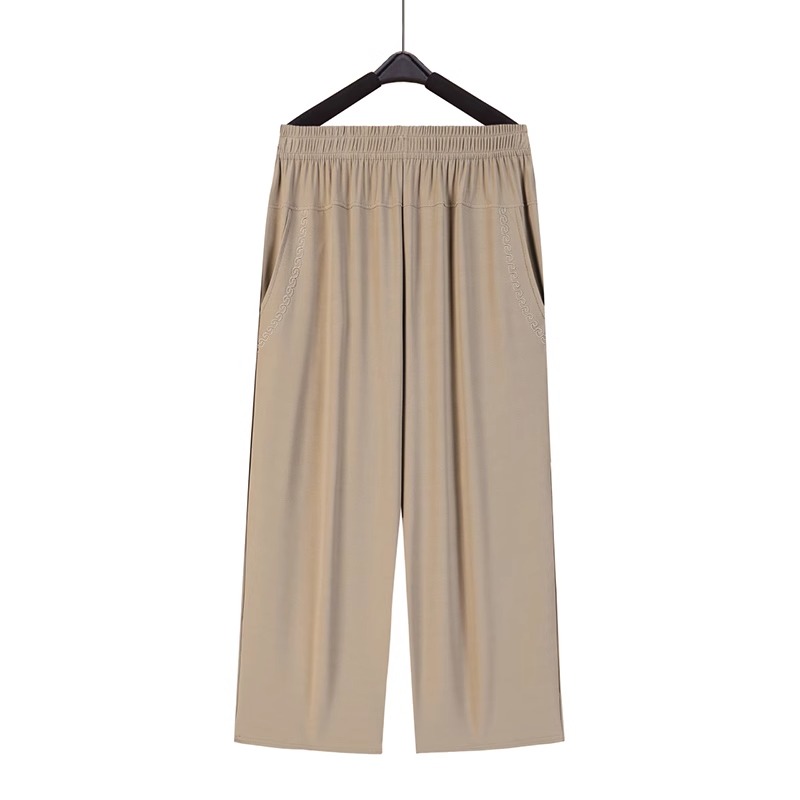 妈妈夏季裤子薄款中老年人七分裤夏天冰丝大码女裤宽松直筒奶奶裤