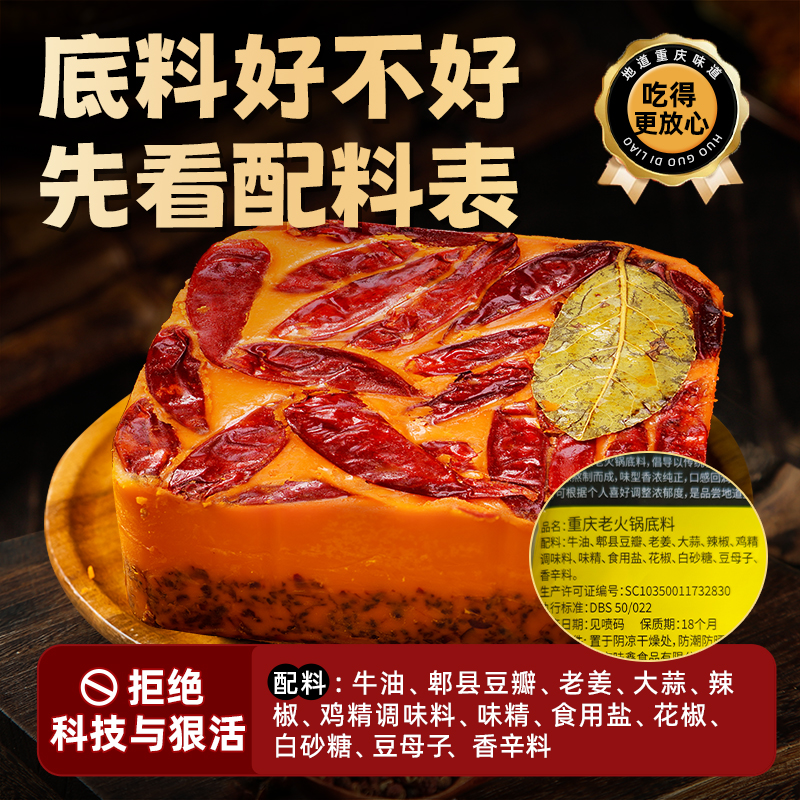 重庆火锅底料500g正宗牛油四川家用麻辣烫麻辣香锅调料老火锅