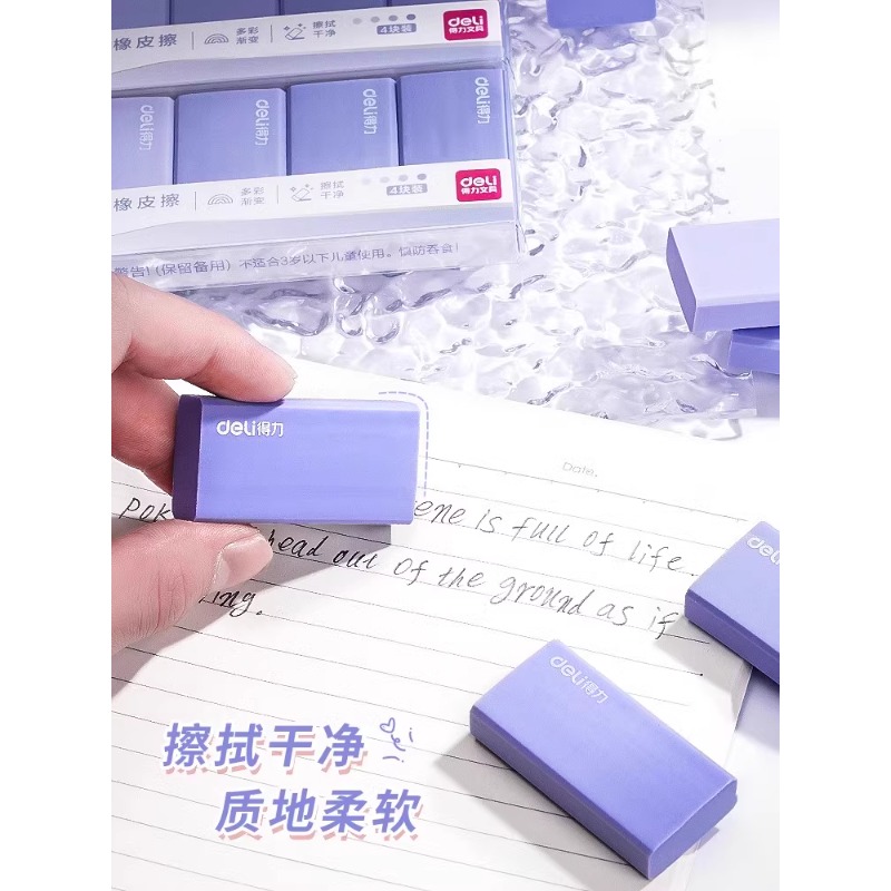 得力渐变橡皮擦小学生专用擦得干净铅笔不留痕儿童4b超大块像皮少屑一年级擦字成线象皮擦无屑美术文具高颜值