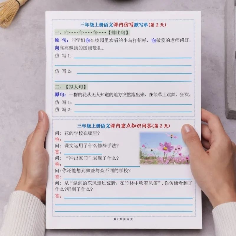 新三年级上册语文1-8单元课内仿写默写单+重点知识问答含答案46页