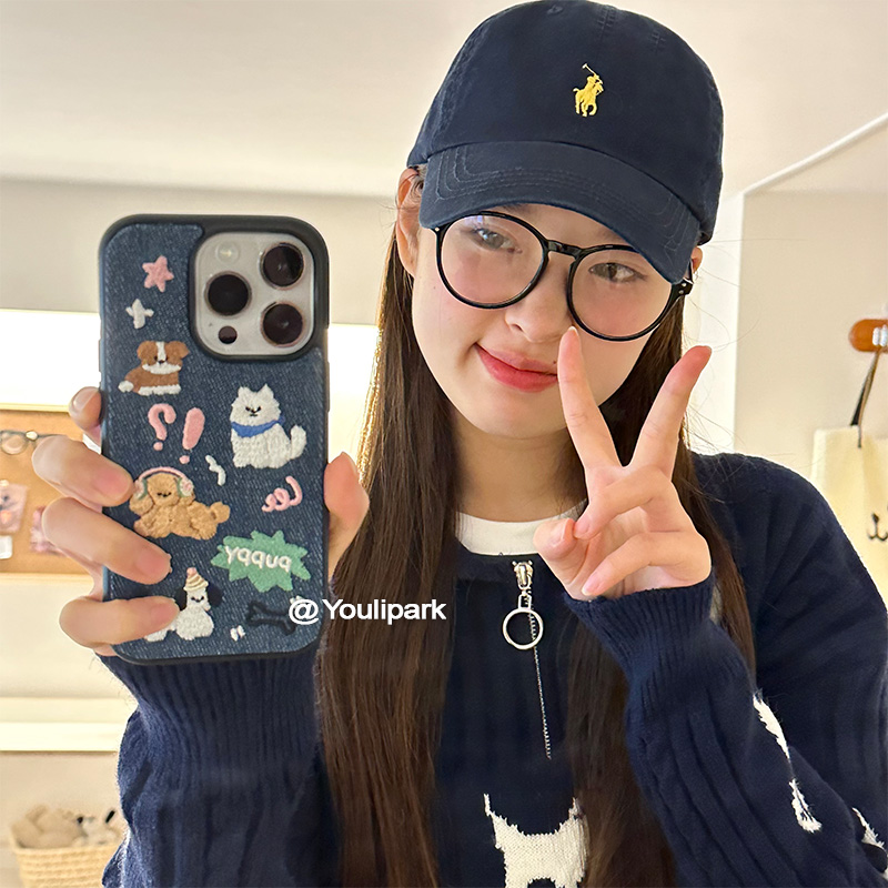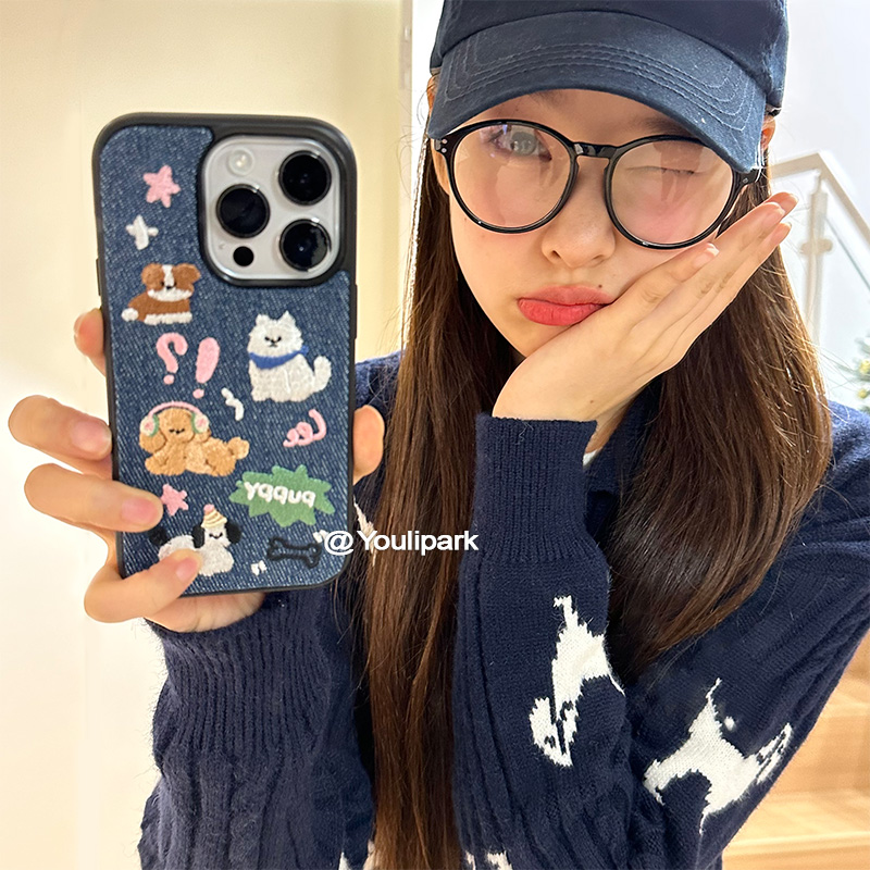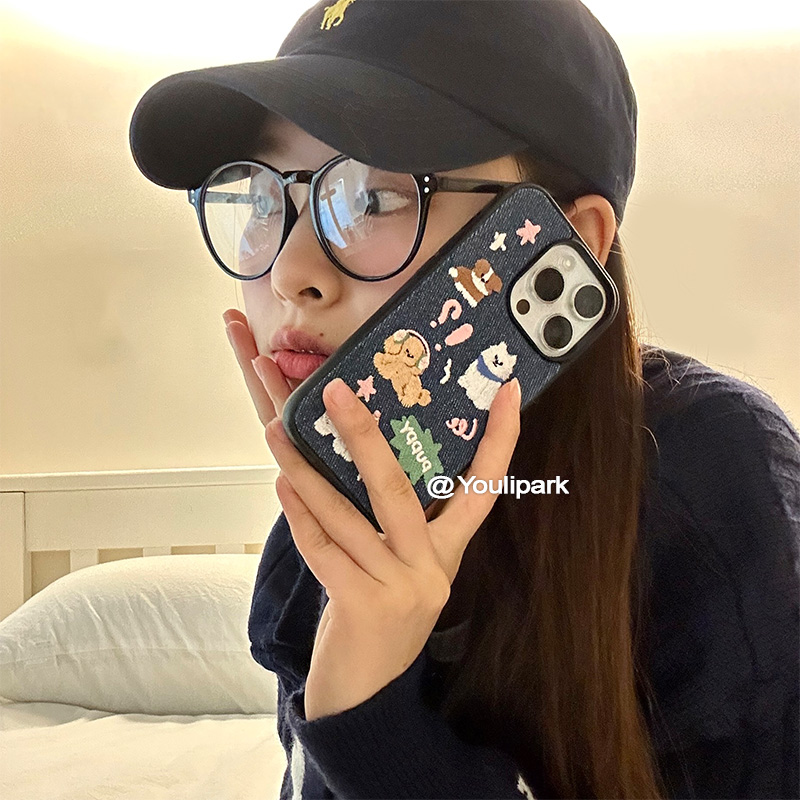 由里公园ins小众少女可爱牛仔刺绣狗狗15适用16pro苹果16ProMax手机壳iPhone16全包12软14Promax防摔保护套13
