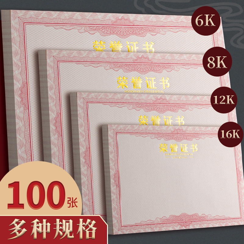 a4荣誉证书内页12k聘书内芯纸16k结业空白纸张定制6k8k奖状纸打印