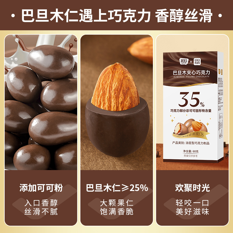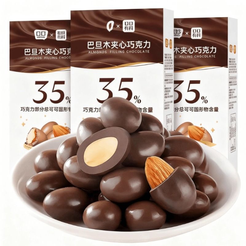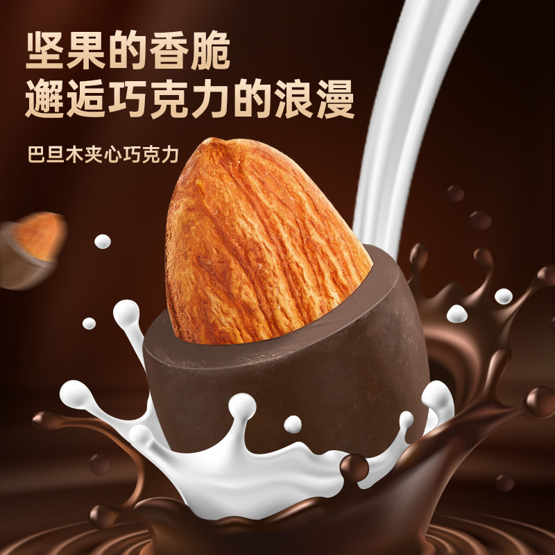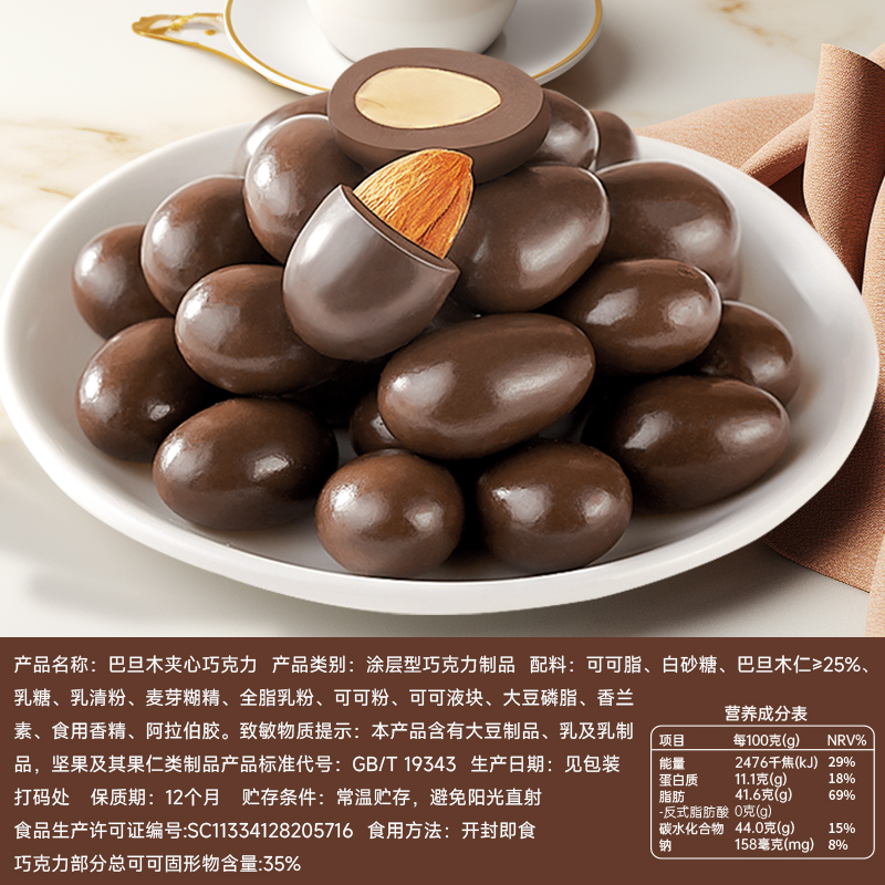 巴旦木黑巧克力豆纯可可脂坚果夹心喜糖糖果过年货小零食散装