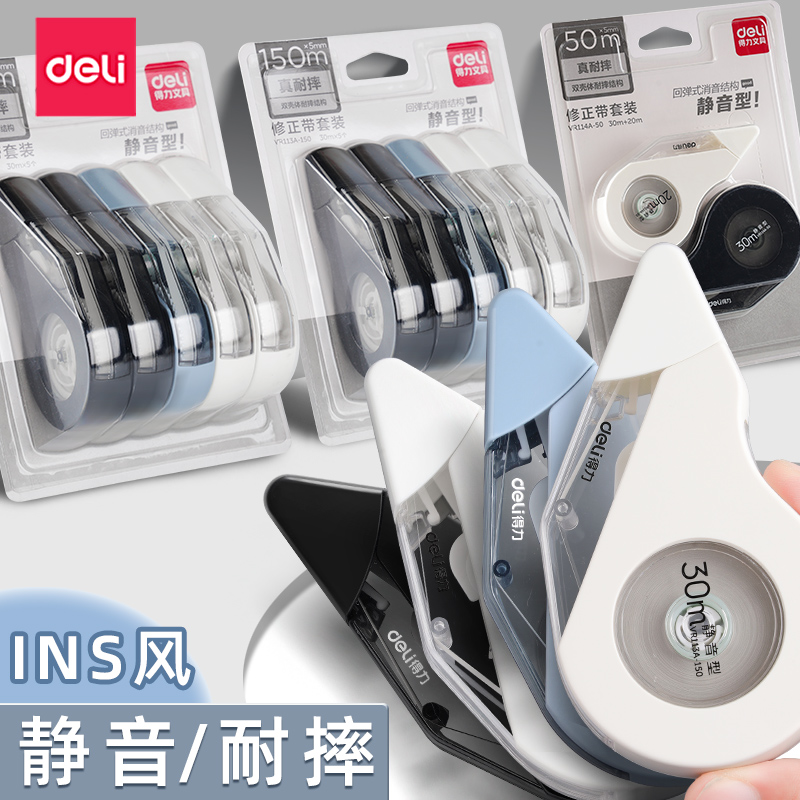 得力静音修正带学生专用涂改带30米大容量女生高颜值初中生用防摔改正带小学生改字带无痕去字无声顺滑修改带