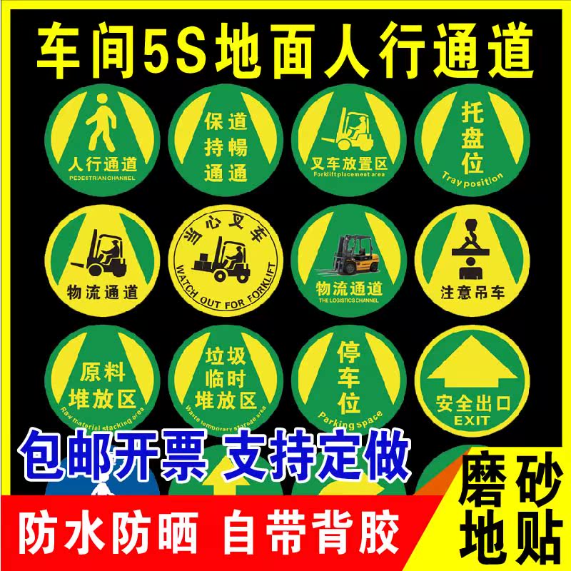 车间5s地面人行通道安全物流通道标识叉车通道工厂车间地坪耐磨地贴环氧地面提示贴当心叉车保持通道畅通