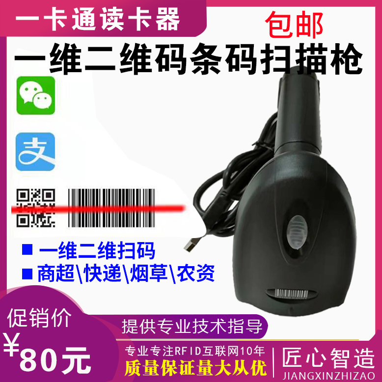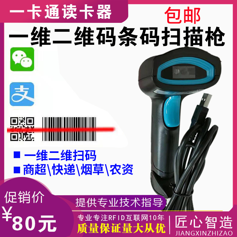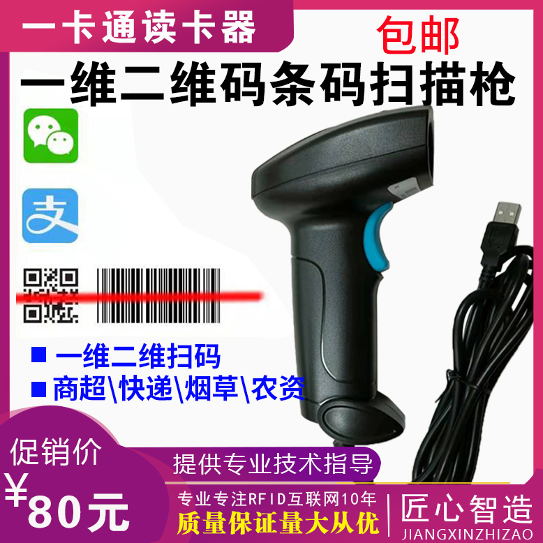 连电脑一维二维码免驱动入库收银盘点快递扫描巴枪支付宝微信无线
