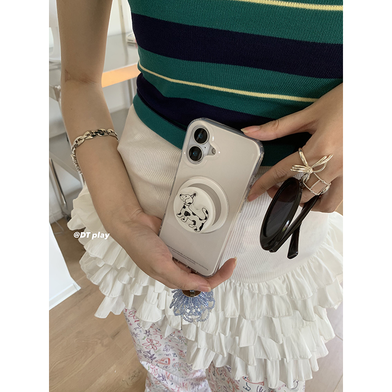 DT play 白色简约斑点小狗可爱出片高级质感韩国ins小众适用于iphone17/16promax/15苹果14/13手机壳保护套
