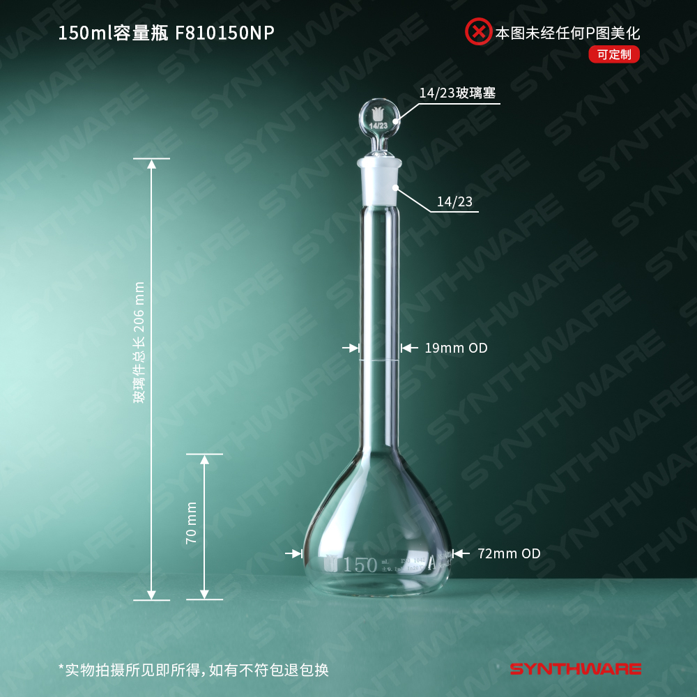 欣维尔玻璃白色容量瓶3.3高硼硅高精度厚壁透明容量瓶5/10/20/25/50/100/250/500ml实验室仪器可过检