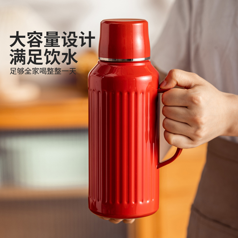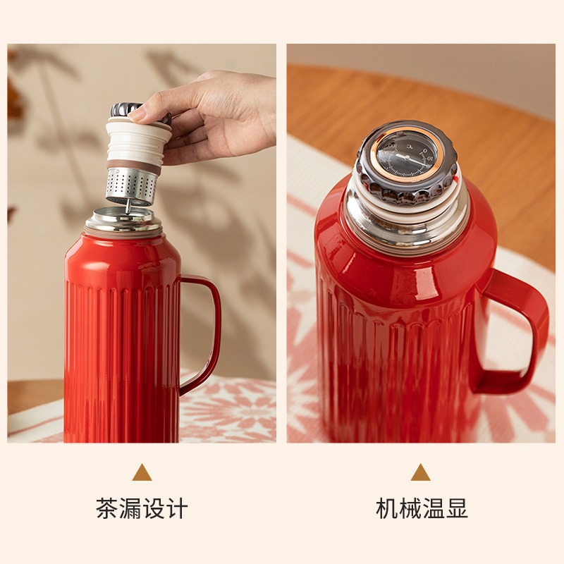 摩登主妇热水壶保温壶红色结婚陪嫁一对水瓶家用保温杯暖壶焖茶壶
