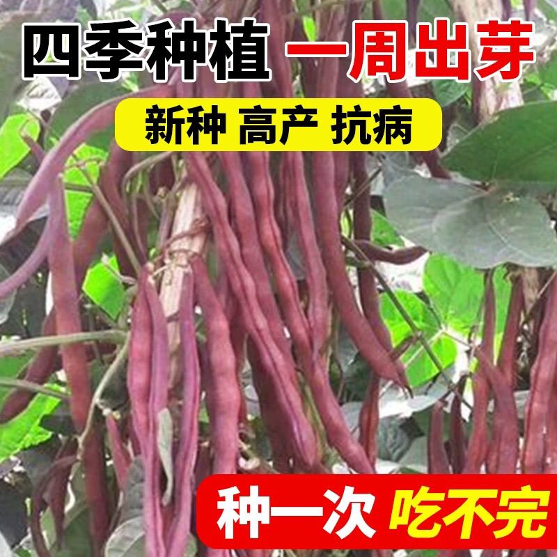 春秋紫红四季豆种子高产大紫袍芸豆红玉紫豆角架豆爬藤蔬菜种籽