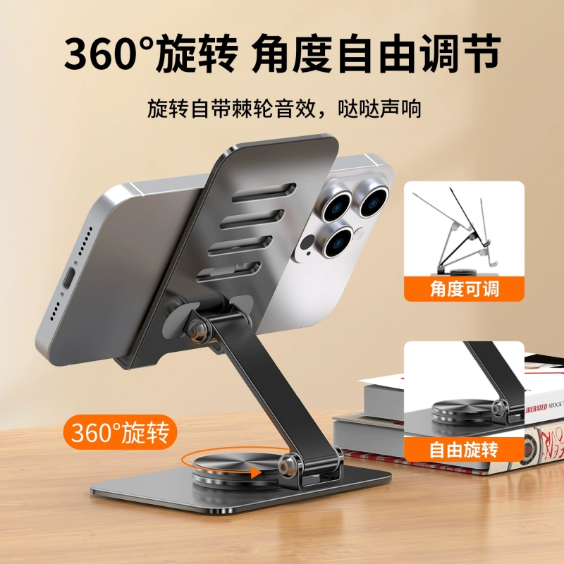 全金属手机桌面支架懒人360°旋转升降ipad平板电脑支撑架看电视直播视频追剧多功能通用碳素钢架子便携折叠