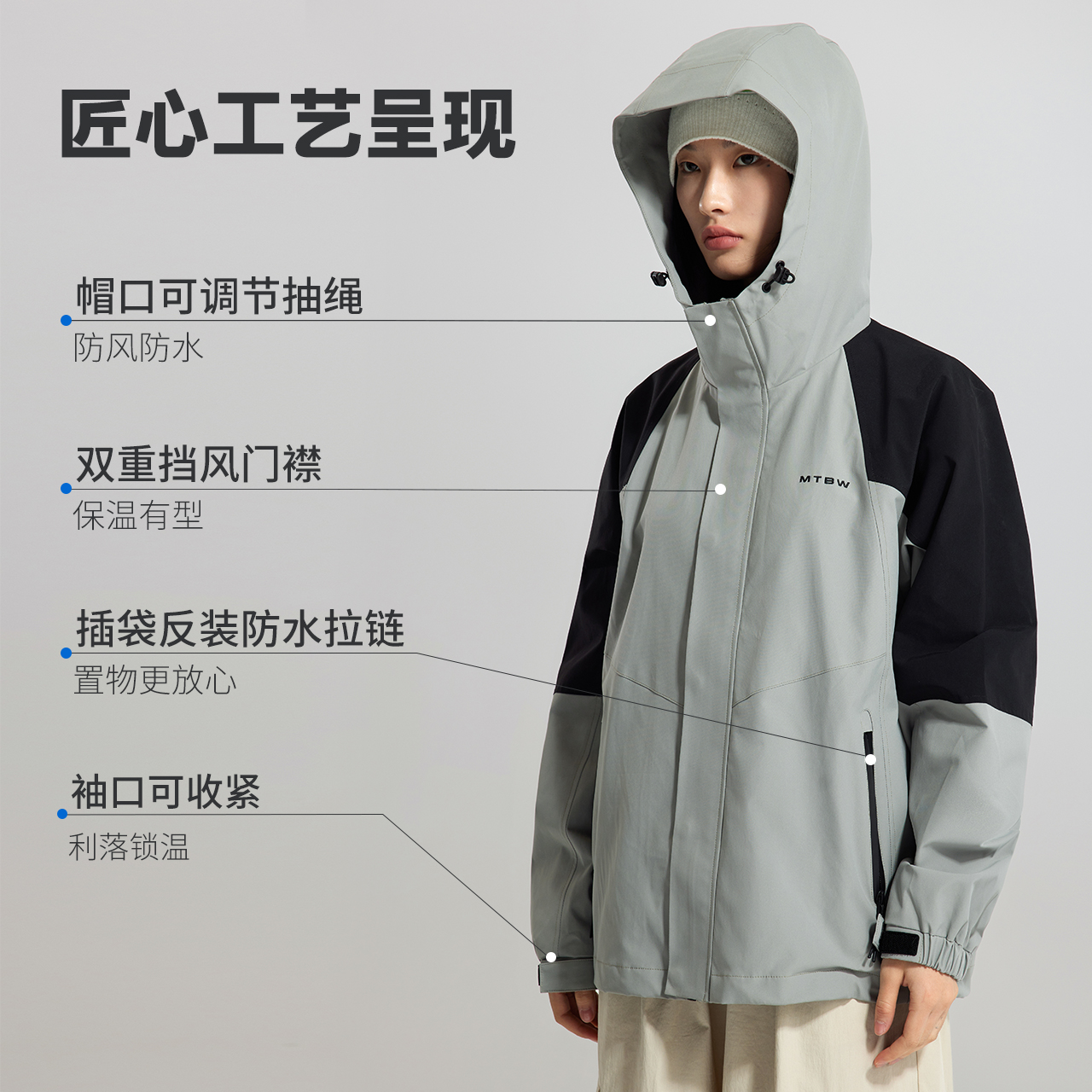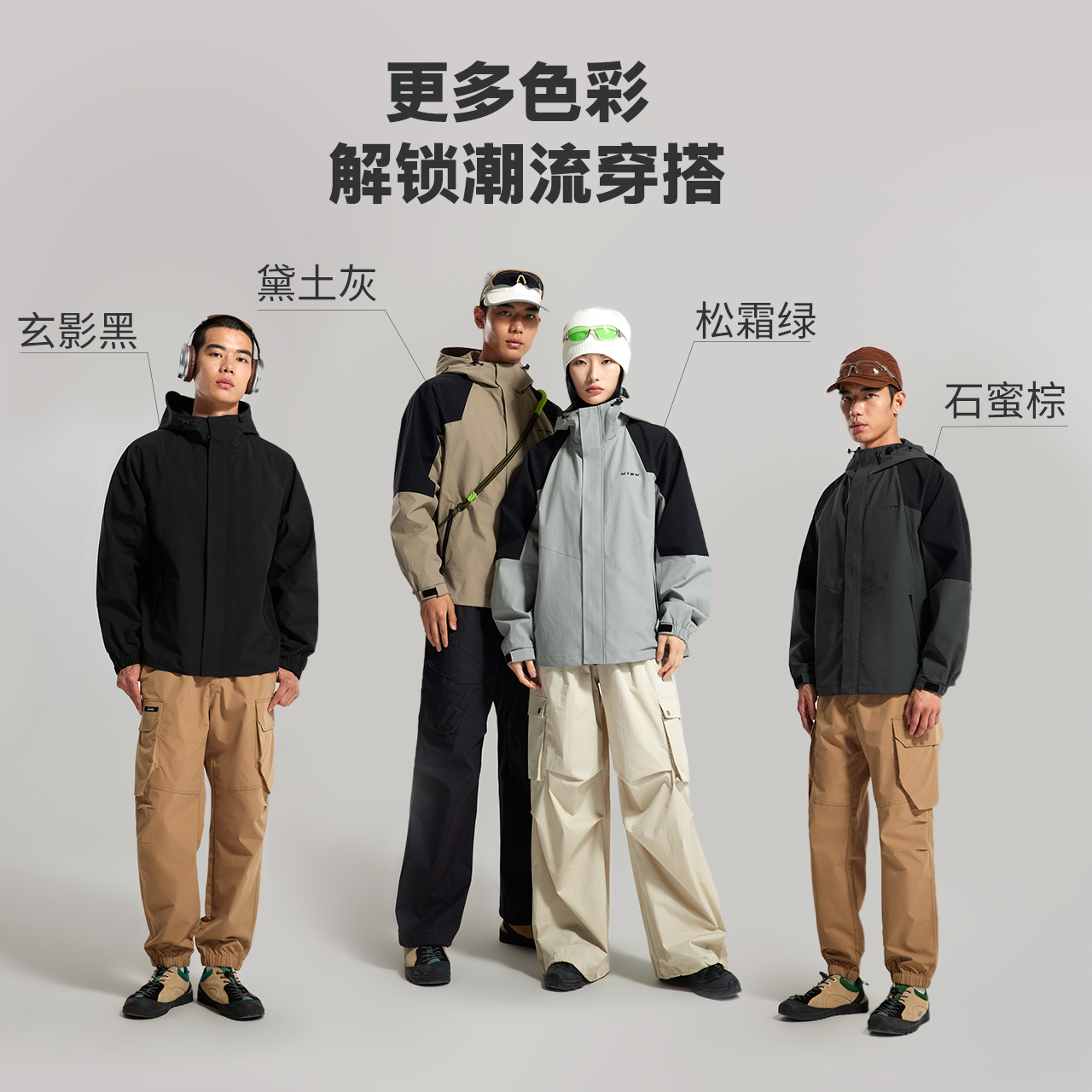 罗蒙情侣款男女同款户外冲锋夹克衣服2025秋季新款可拆卸帽外套男