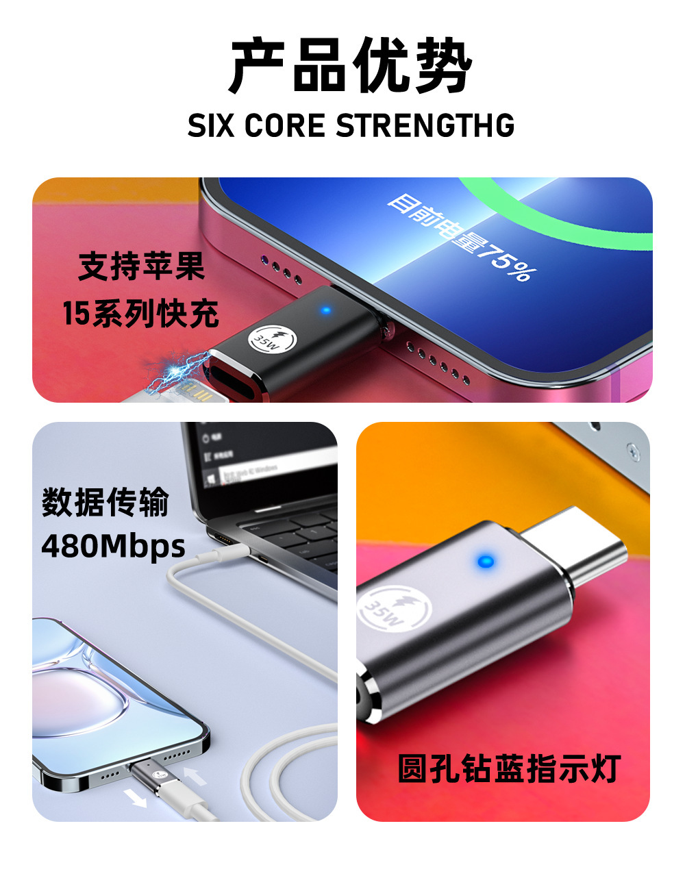 lighting母转TYPE-C充电转换头公适用苹果15华为小米三星等手机转