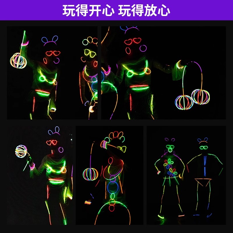 荧光棒粘衣服发光儿童无莹毒光彩色棒晚会炫彩光银光夜光批发手环