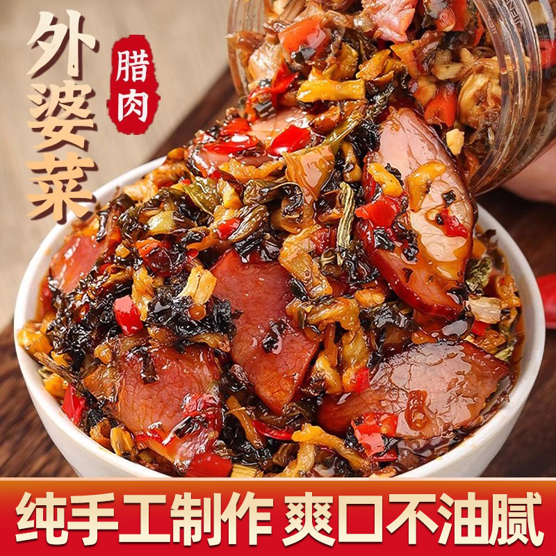 正宗湘西外婆菜腊肉下饭菜湖南特产烟熏瘦肉开胃咸菜拌饭瓶装即食