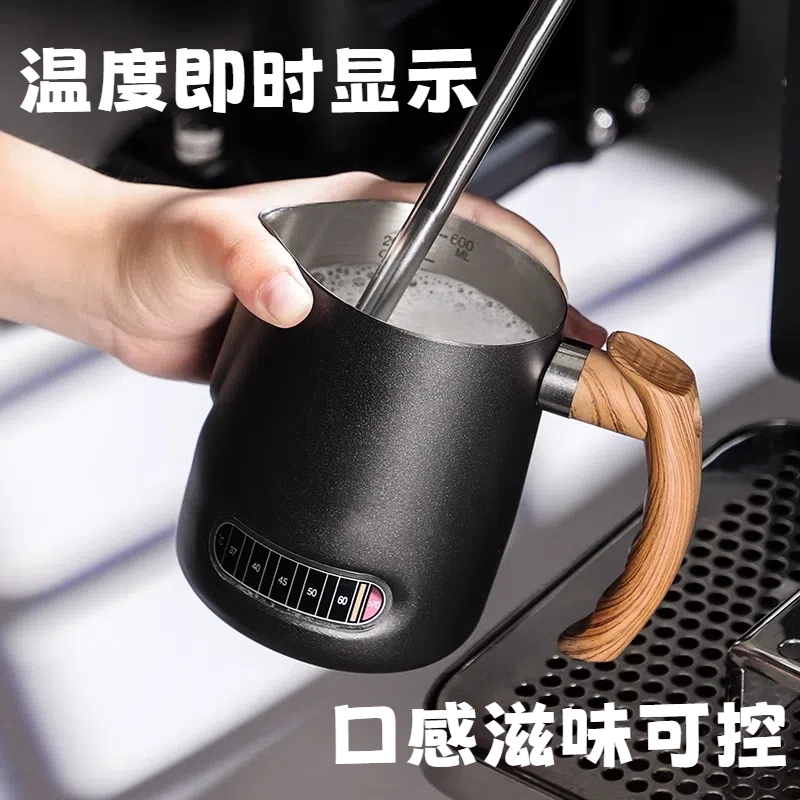 意式手冲咖啡拉花杯不锈钢尖嘴拉花缸温显带刻度打奶泡杯拉花神器