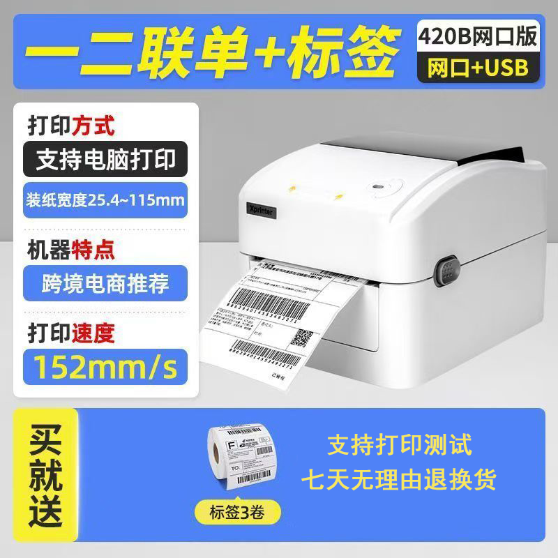 芯烨打印机420B快递单打印机热敏条码不干胶标签打印机速卖通跨境电商通用打单机贴纸淘宝一二联电子面单蓝牙