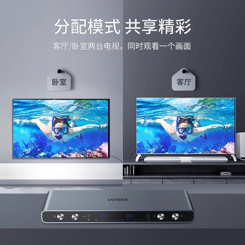 绿联hdmi矩阵四进二出带音频光纤视频画面分配器4K高清线机顶盒电脑分屏显示器拓展多屏4进2出同时转换切换器