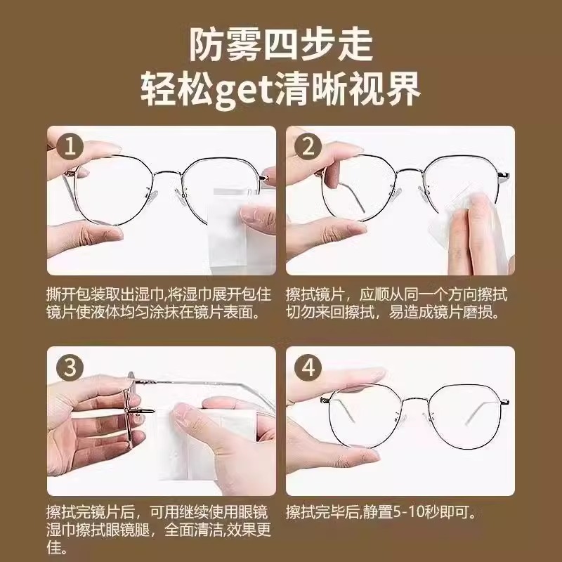 5盒眼镜清洁湿巾一次性眼镜布擦拭纸擦手机屏幕镜片专用防雾好物