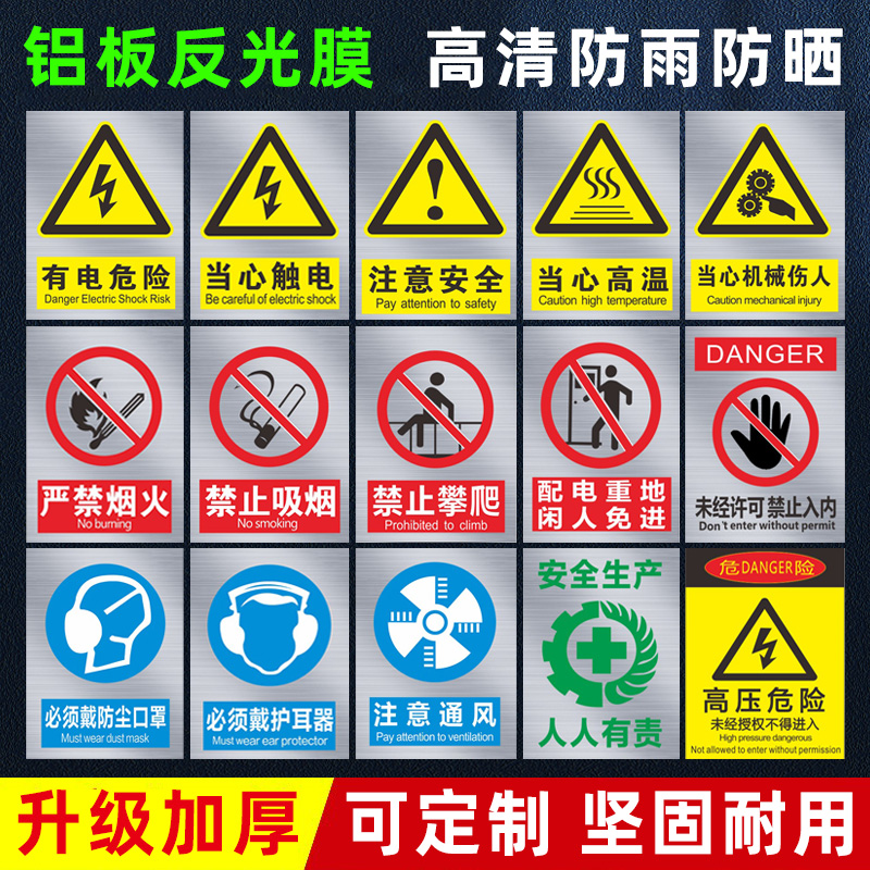 安全标识牌铝板禁止吸烟提示牌标识牌严禁烟火警示牌消防标识标牌铝板工厂车间有电危险警示贴电力标志牌定做