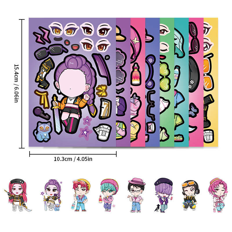 16张k-pop猎魔女团贴纸二次元动漫人物换脸拼贴创意换装自粘贴画