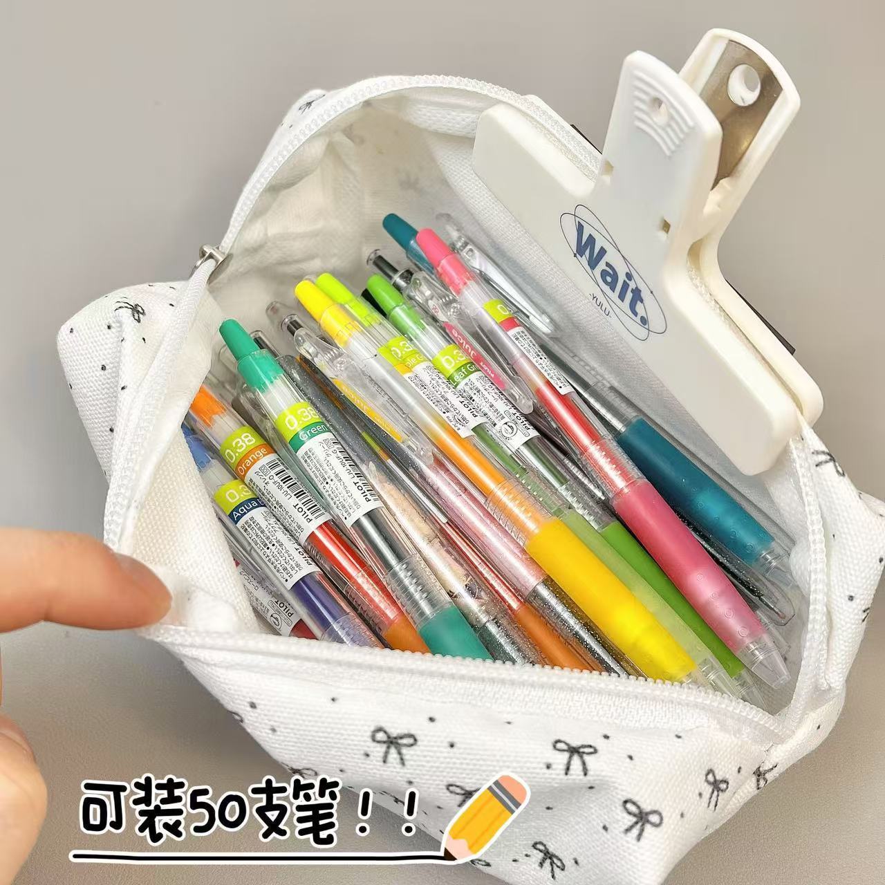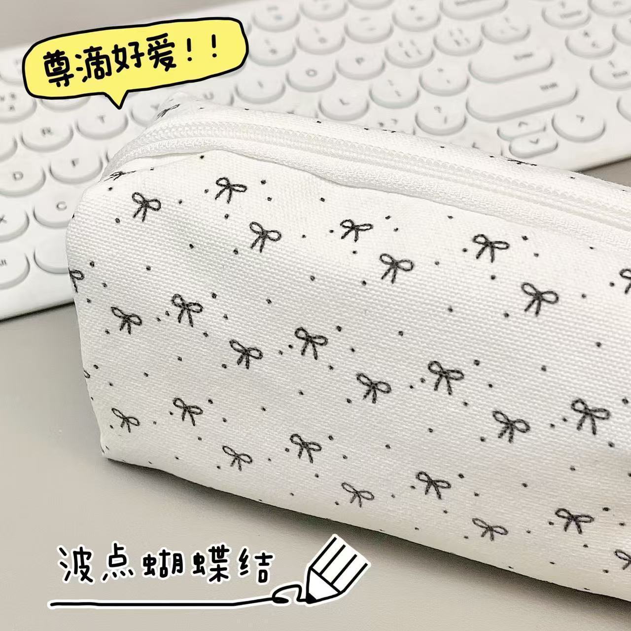 黑白蝴蝶结笔袋ins高颜值可爱少女学生用化妆包大容量文具收纳袋