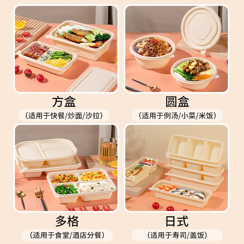 一次性玉米淀粉可降解打包盒外卖圆碗三格四格食品级餐盒带盖方形