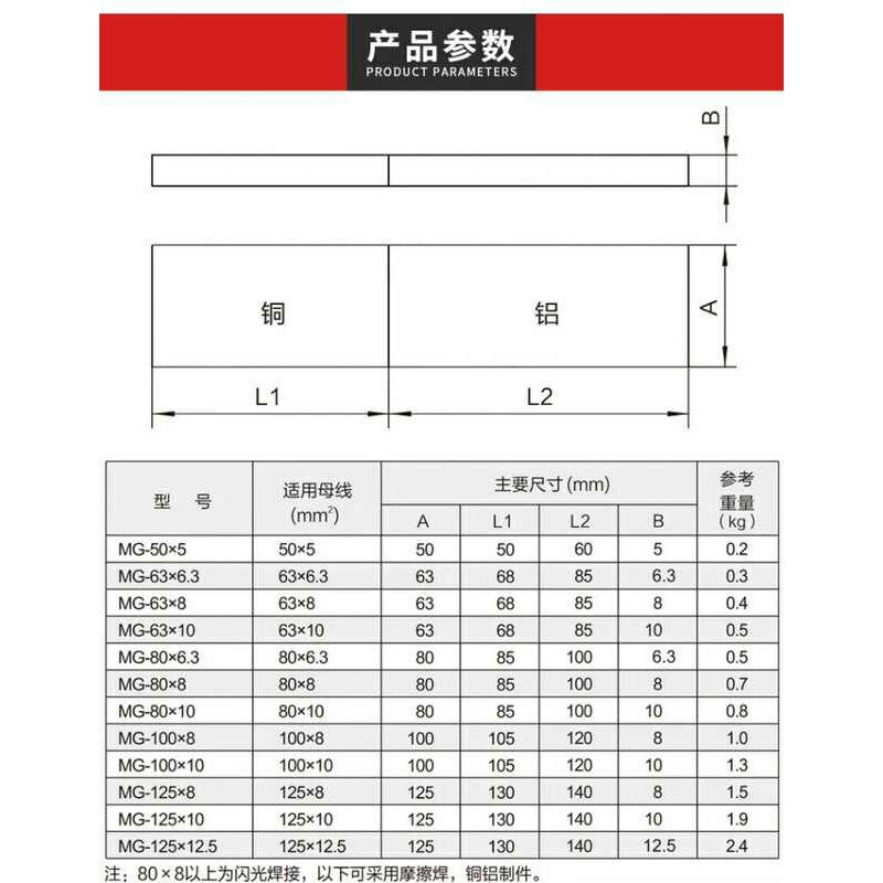 铜铝过渡板MG8-*80闪光焊摩擦焊铜排铝排铜铝连接版铜铝过度板6.3