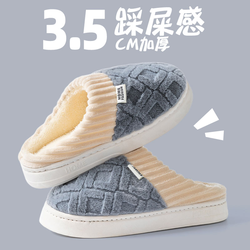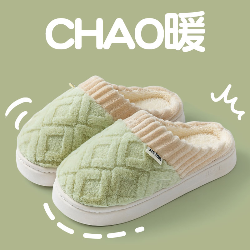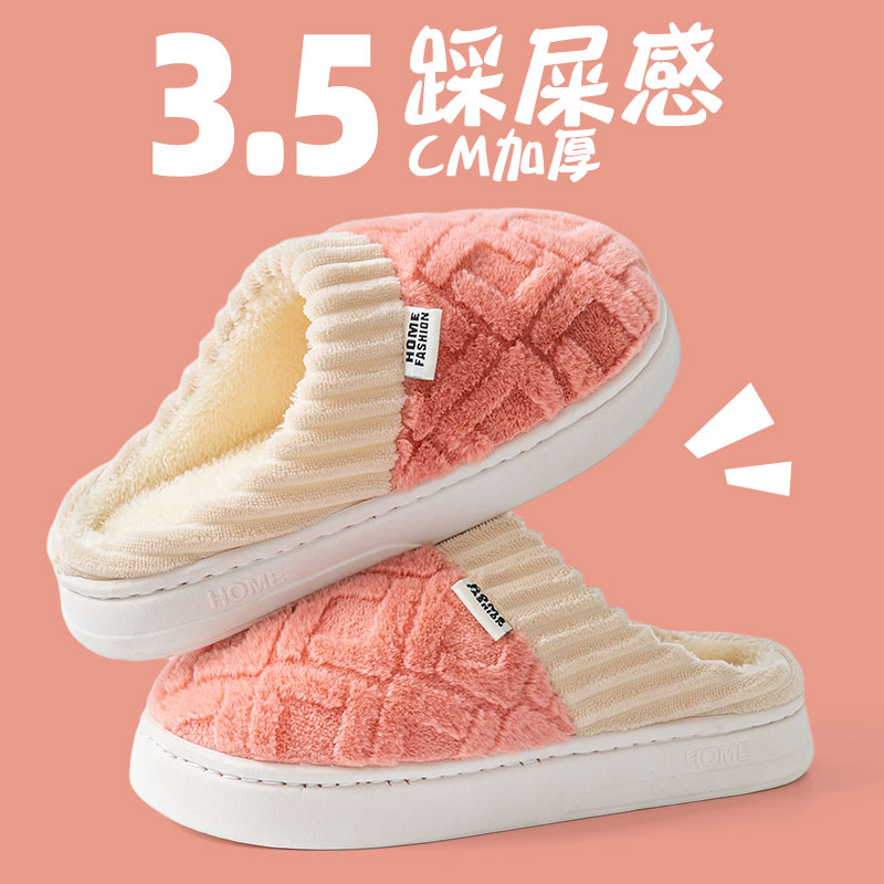棉拖鞋女士毛毛绒秋冬季室内家居家防滑厚底踩屎感保暖红色居家棉