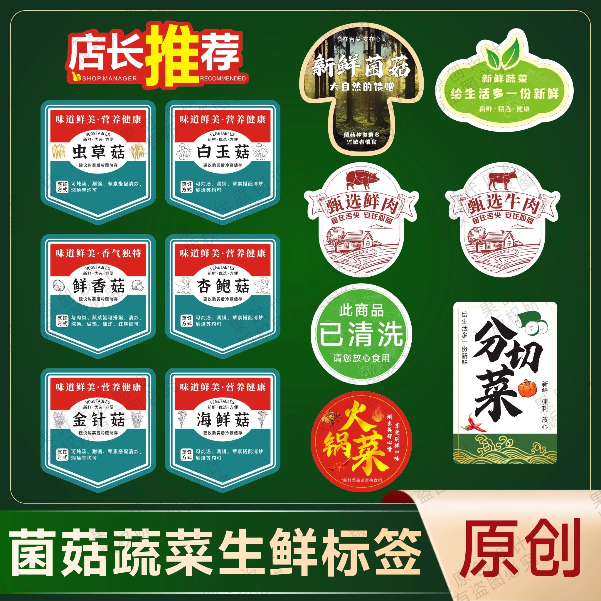 菌菇标签蔬菜贴纸生鲜超市虫草花分切菜猪肉牛肉商超自粘果蔬商标