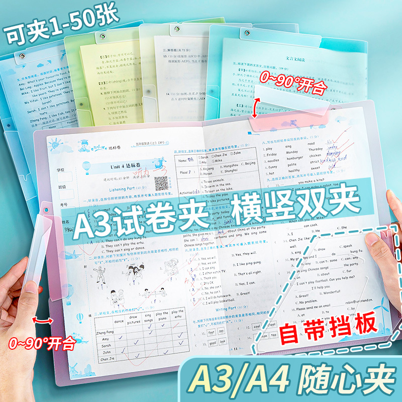 a3试卷夹a4旋转双拉杆文件夹装试卷的收纳袋小学生初高中生专用大容量分类卷子可翻页整理夹高颜值