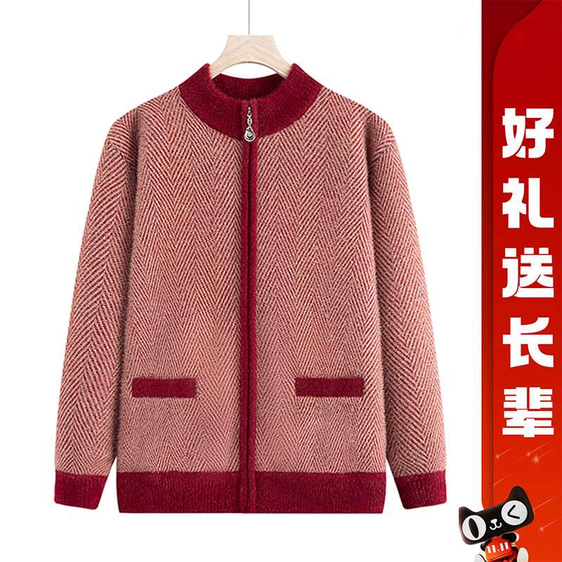 中老年人秋装外套女妈妈加绒加厚针织衫2025新款奶奶秋冬开衫衣服