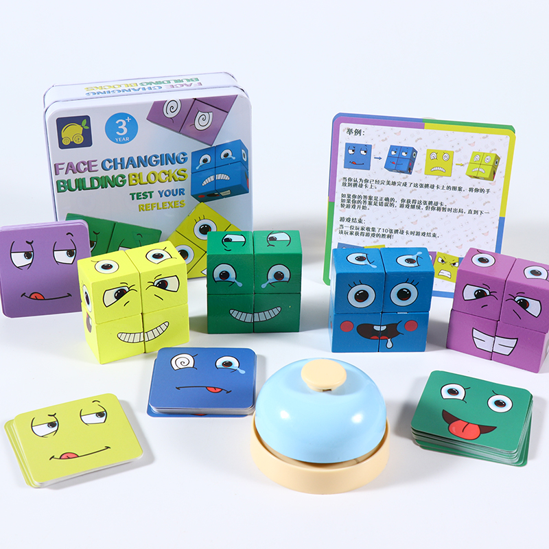多表情魔方儿童拼图积木多人表情按铃亲子互动益智桌游玩具