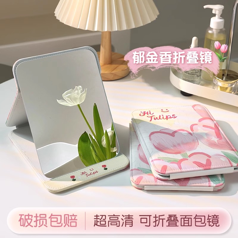 桌面化妆学生宿舍办公室可立便携台式折叠大镜子随身手持发光高清