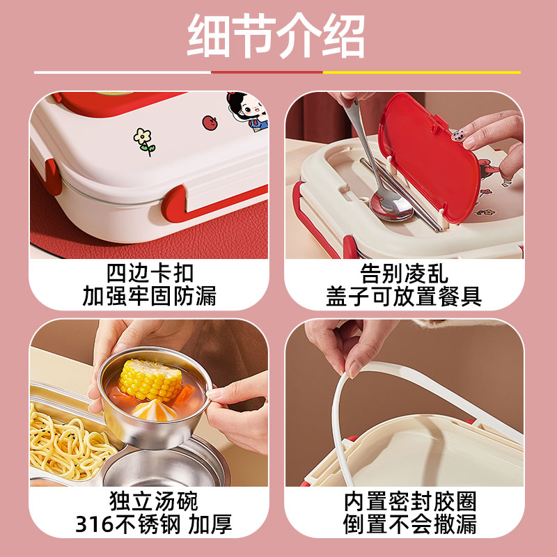316不锈钢保温饭盒便当盒真空保温桶饭盒学生送饭户外餐盒 4格