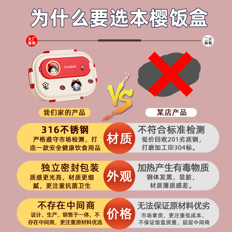 保温饭盒儿童小学生上学专用餐盒316不锈钢分隔餐盘上班族便当盒