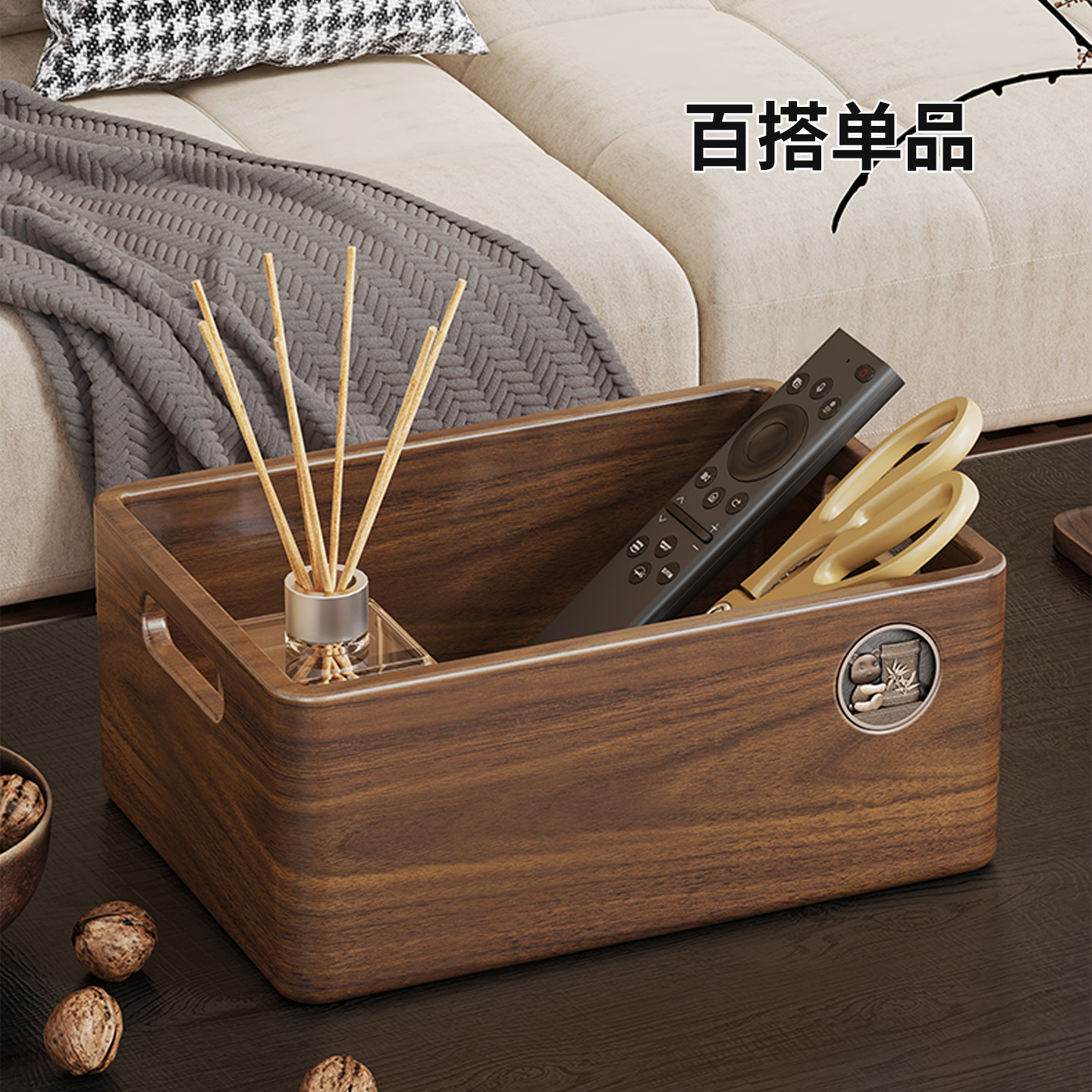 桌面收纳盒实木中式客厅茶几收纳筐零食钥匙杂物化妆品剪刀储物筐