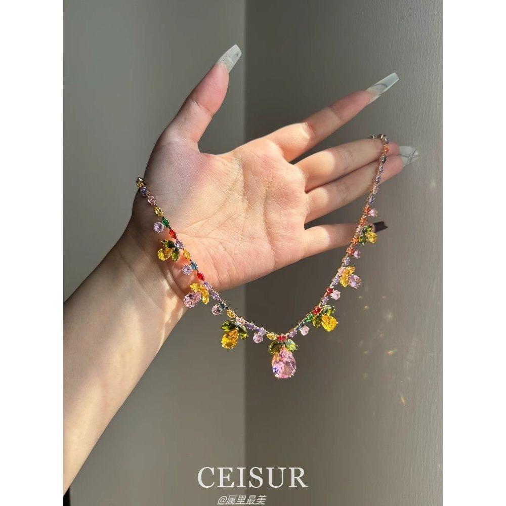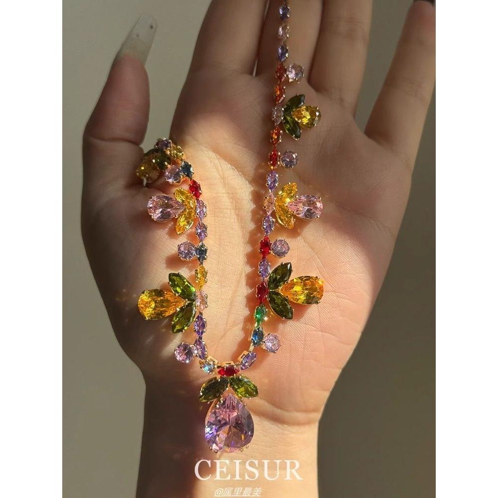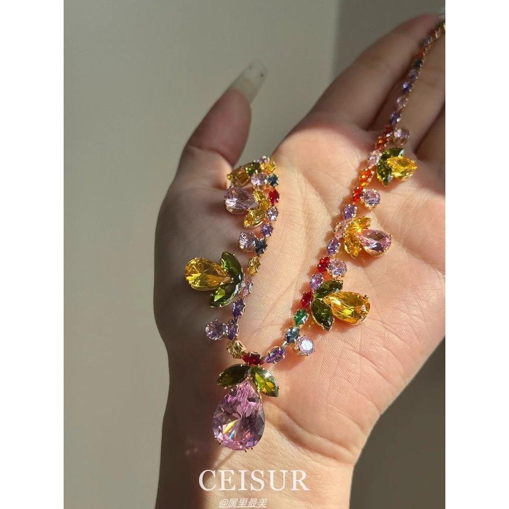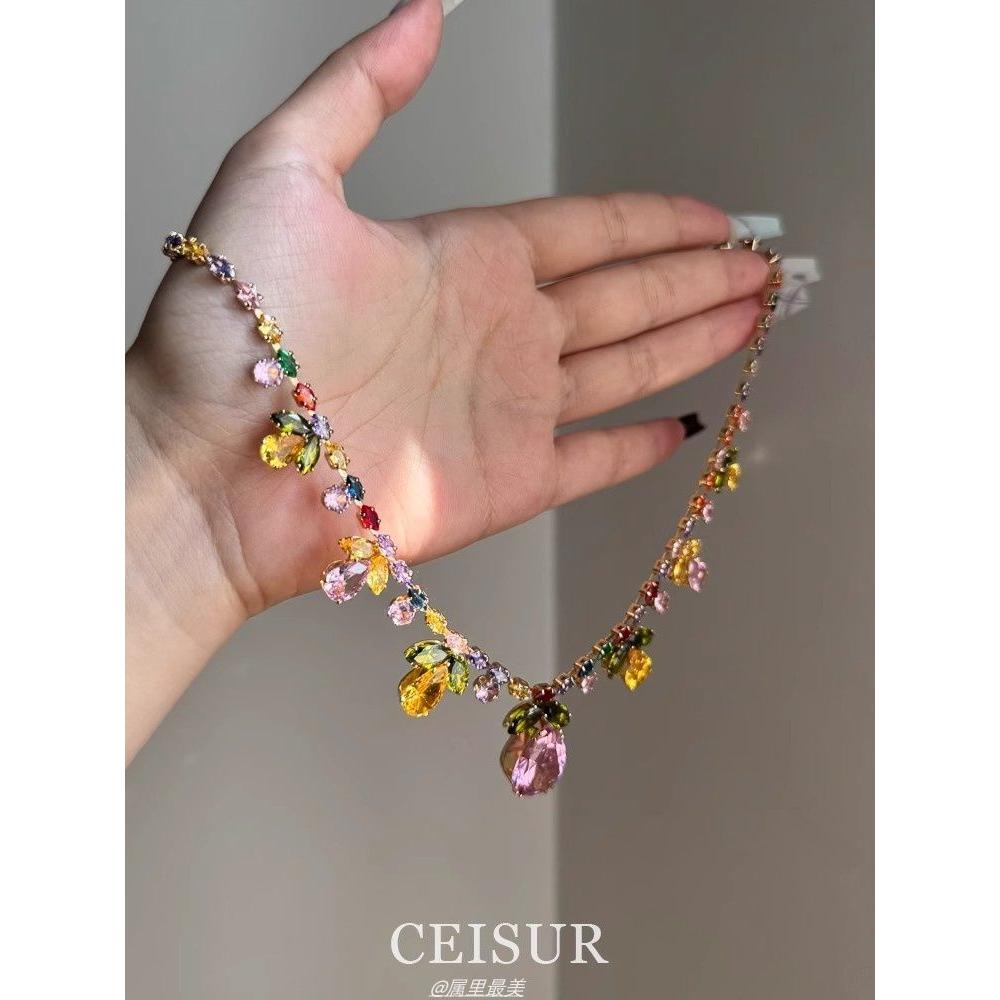 盛夏的果实!重工款彩色锆石项链女款轻奢小众高级感锁骨链颈链