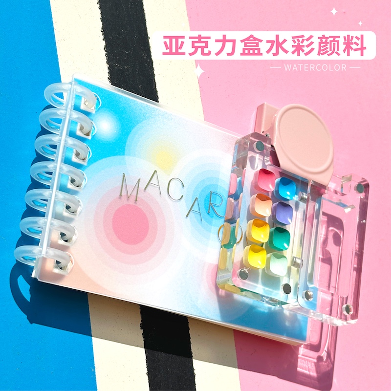 飞乐鸟亚克力盒水彩颜料迷你小画板便携式套装旅行写生小盒分装颜料盒和小本子小画本美术专用固体水彩画颜料