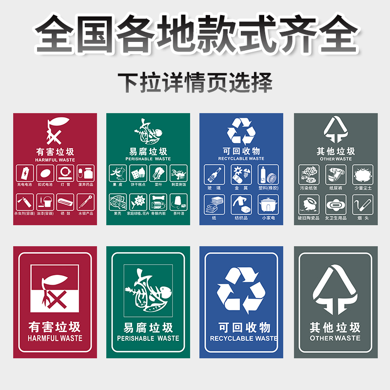 垃圾分类标识贴纸大垃圾桶其他易腐不可回收有害厨余干湿其它其余生活图国标环卫标签指示户外说明杭州标志牌