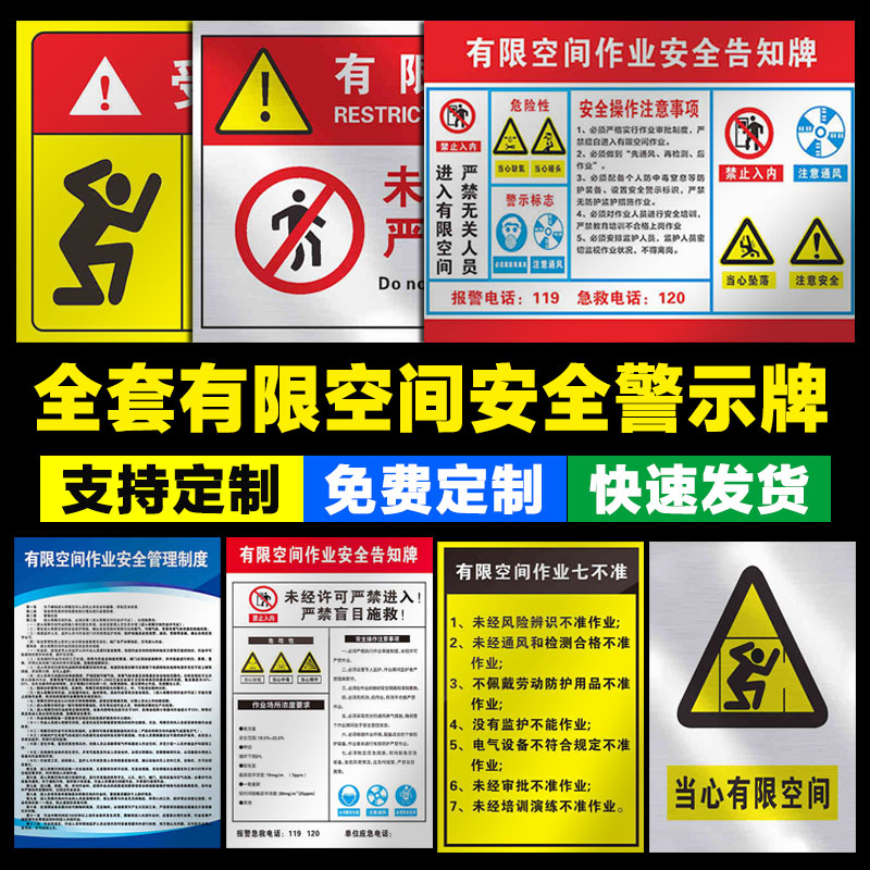 有限空间安全警示牌告知标识牌密闭受限空间作业安全提示未经许可禁止入内严禁作业风险点操作规程制度铝板
