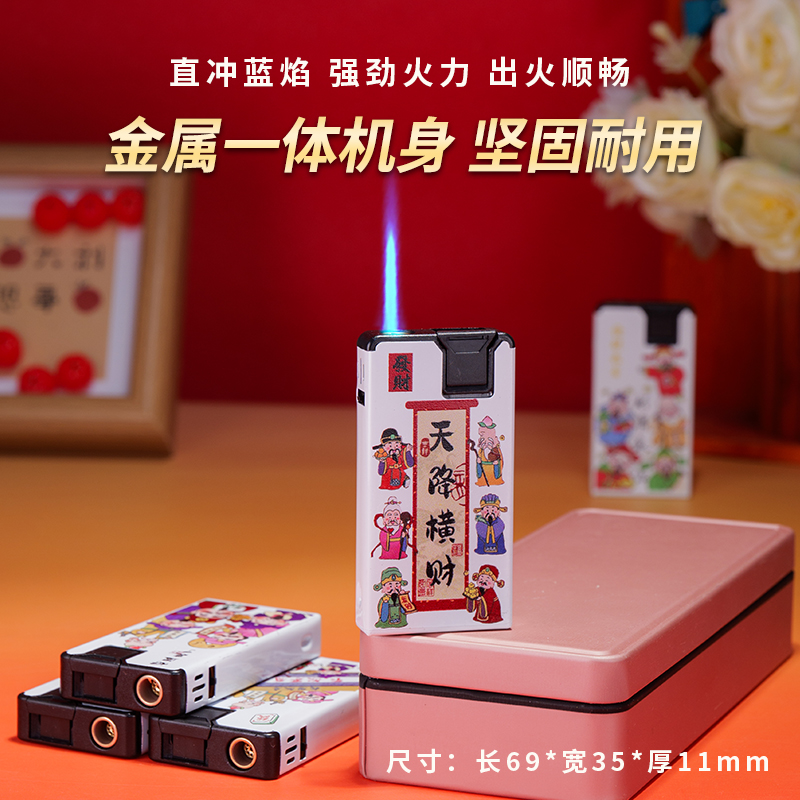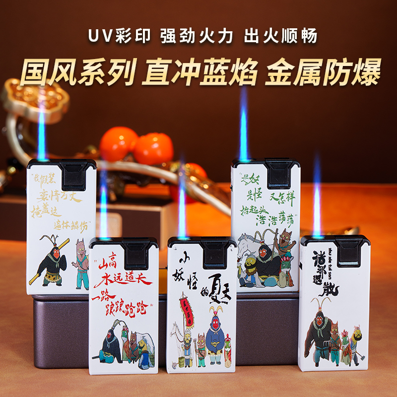 金属防风蓝焰直冲卡通彩印充气打火机防爆高档耐用批发火机高颜值