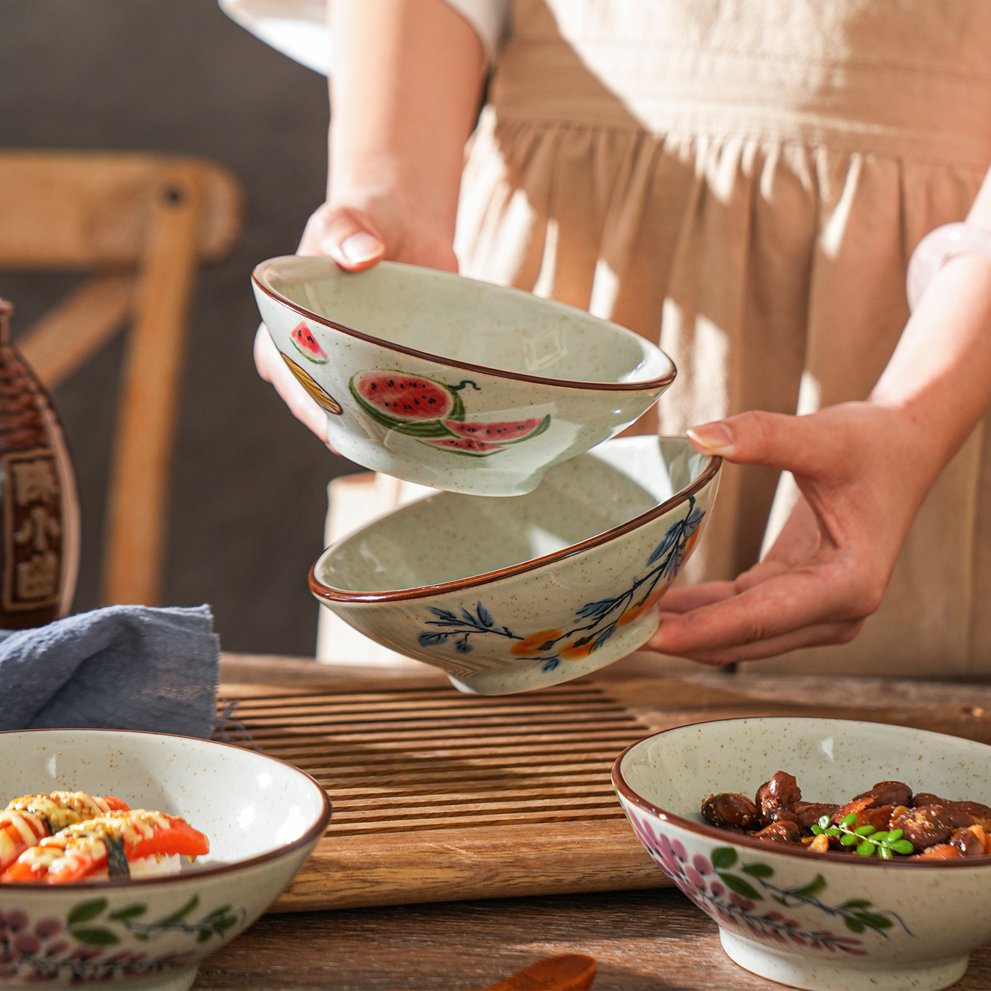 奶油风陶瓷碗家用卡通菜盘子可爱米饭碗汤碗釉下彩儿童餐具耐高温