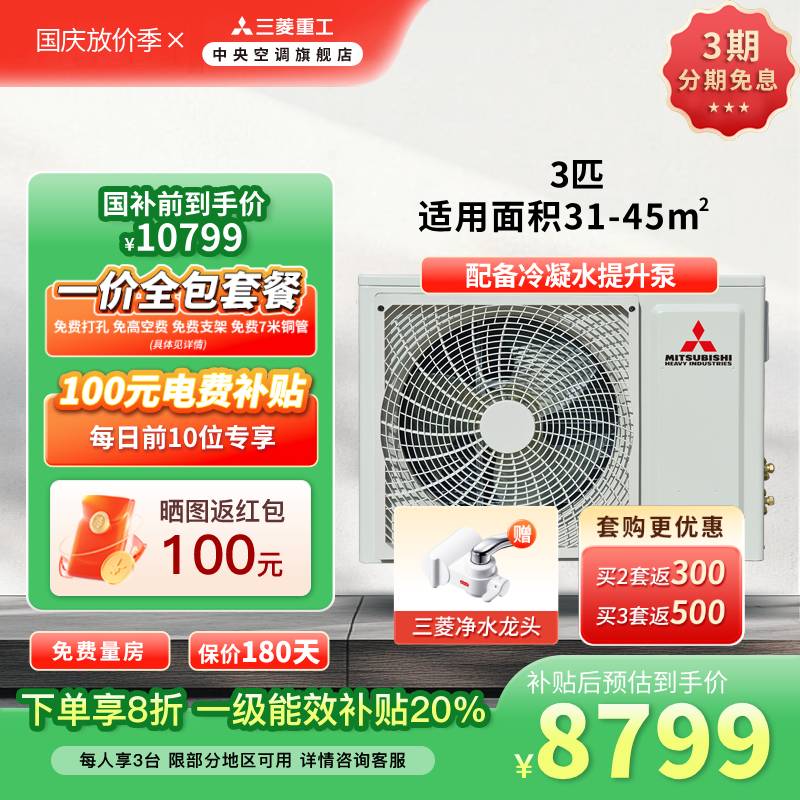 三菱重工3匹一拖一家用客厅卧室中央空调UBV一级能效变频风管机