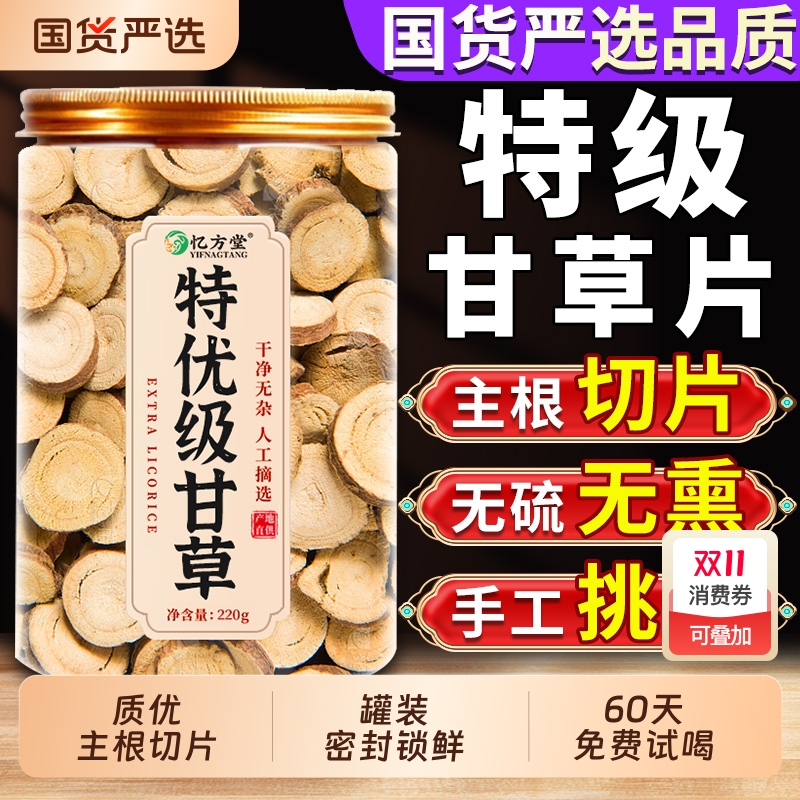 特级甘草片泡水喝生甘草中药材正品旗舰店干草片切片养生茶甘草茶