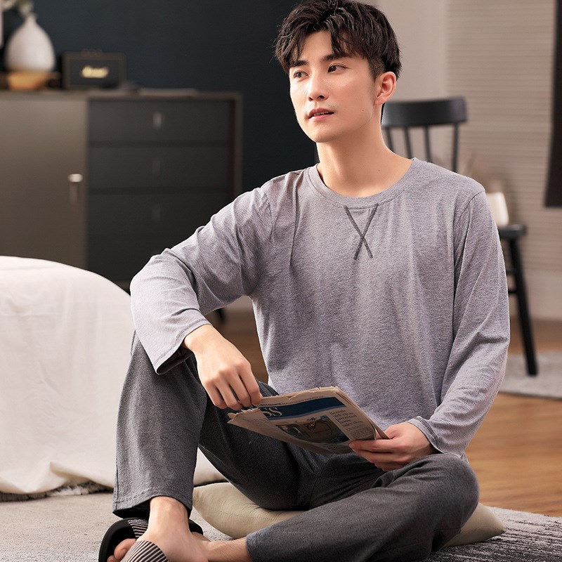 莫代尔男士睡衣夏季长袖套装春秋款薄款青年韩版加肥加大码家居服