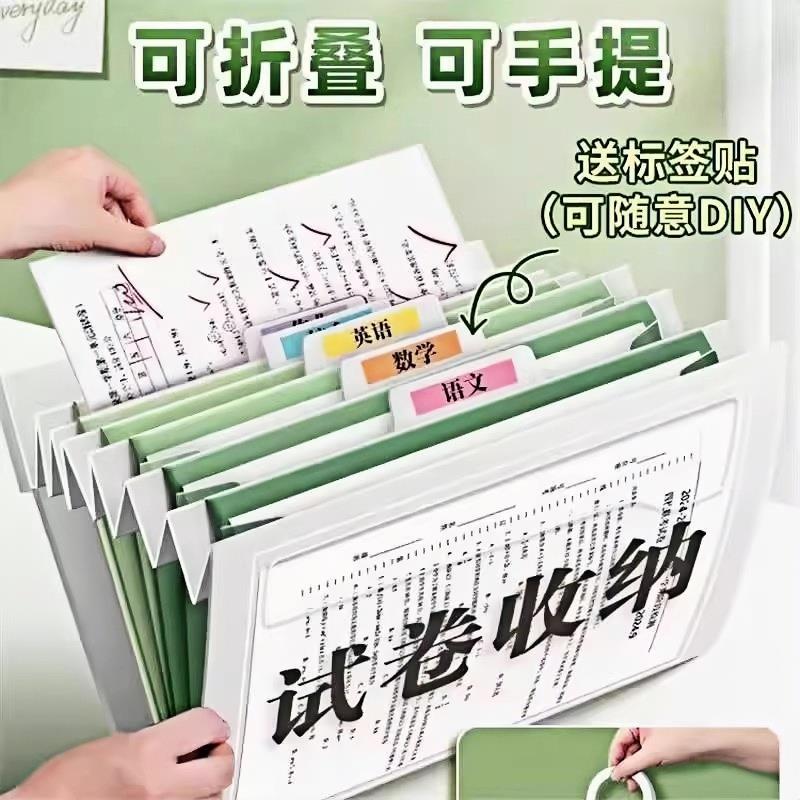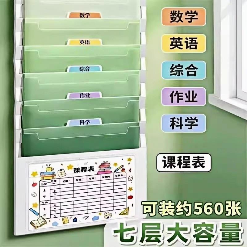悬挂式彩色风琴包文件夹A4多层大容量学科书本资料试卷收纳袋小学生初高中用多功能壁挂式分类整理神器ins风