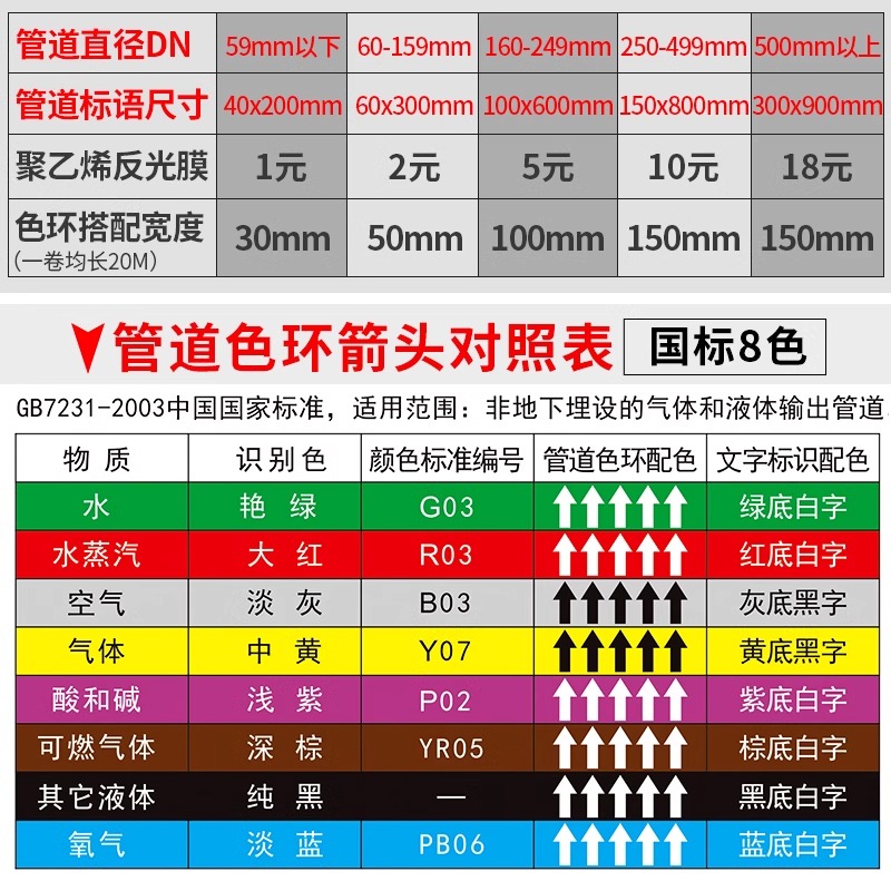管道标识流向箭头反光膜贴纸国标医用指示贴化工气体管路通道安全提醒标牌实验室工作台压缩空气提示标签定制