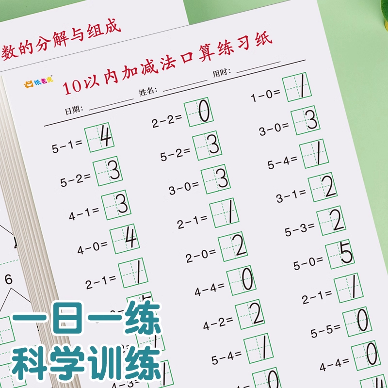 幼小衔接每日一练十10以内加减法的分解与组成口算练习纸一年级下册幼儿园升小学生数学练习题册天天练算数本