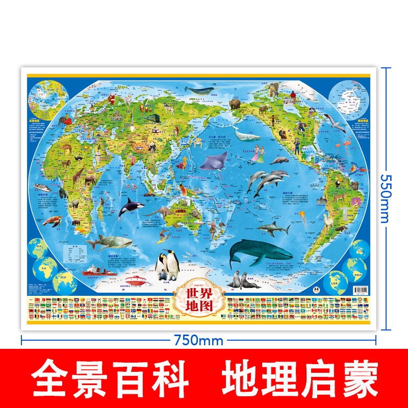 【巨划算2张】少儿趣味地理知识百科全书中国地图和世界地图儿童版高清大尺寸地理知识地图墙贴初中小学生版贴画挂图中国地理挂画